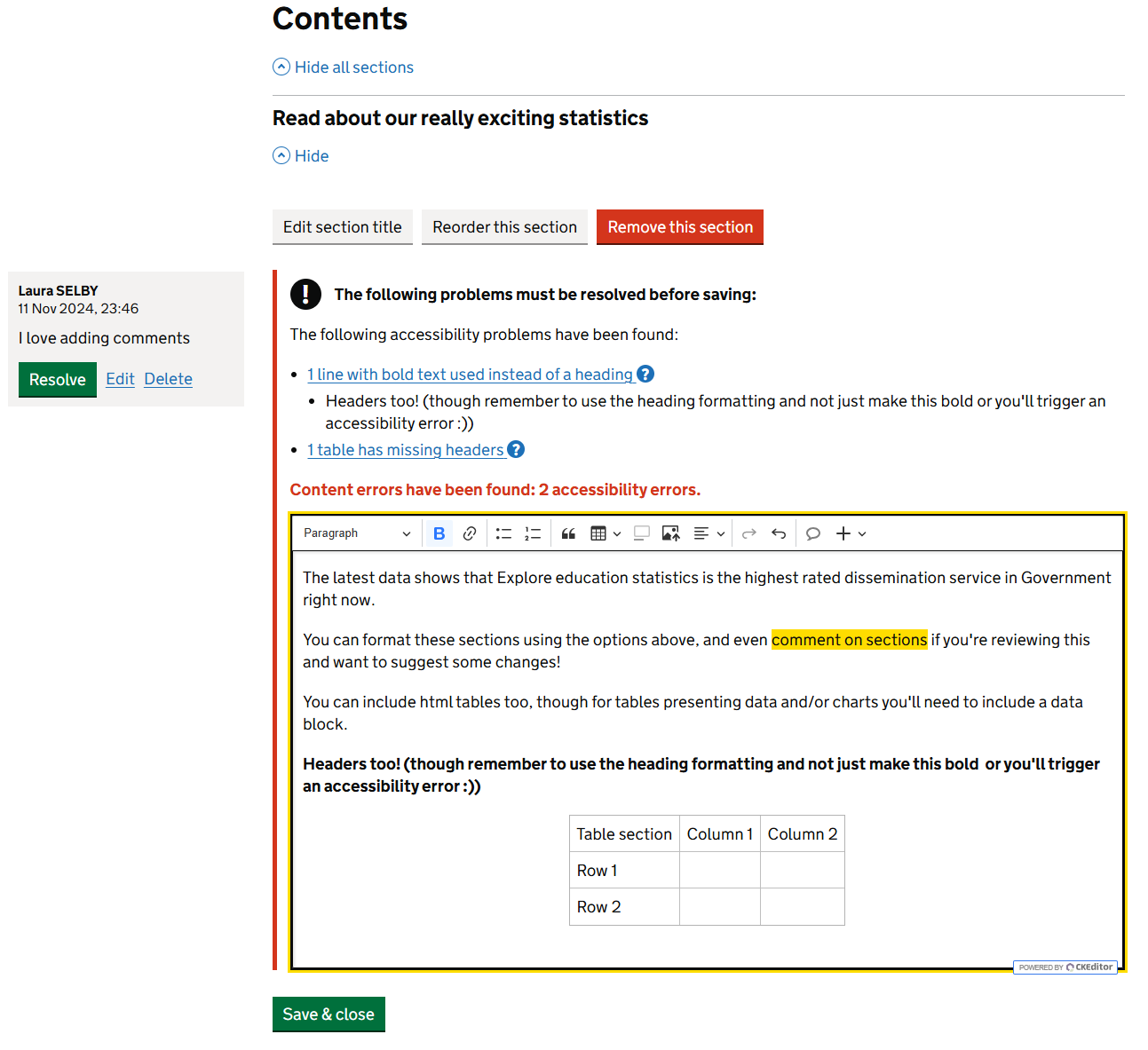 we’ve built in automatic accessibility checks to prevent common content isuses (e.g. poor link text, missing alt text, using bold instead of headers and illogical header ordering)