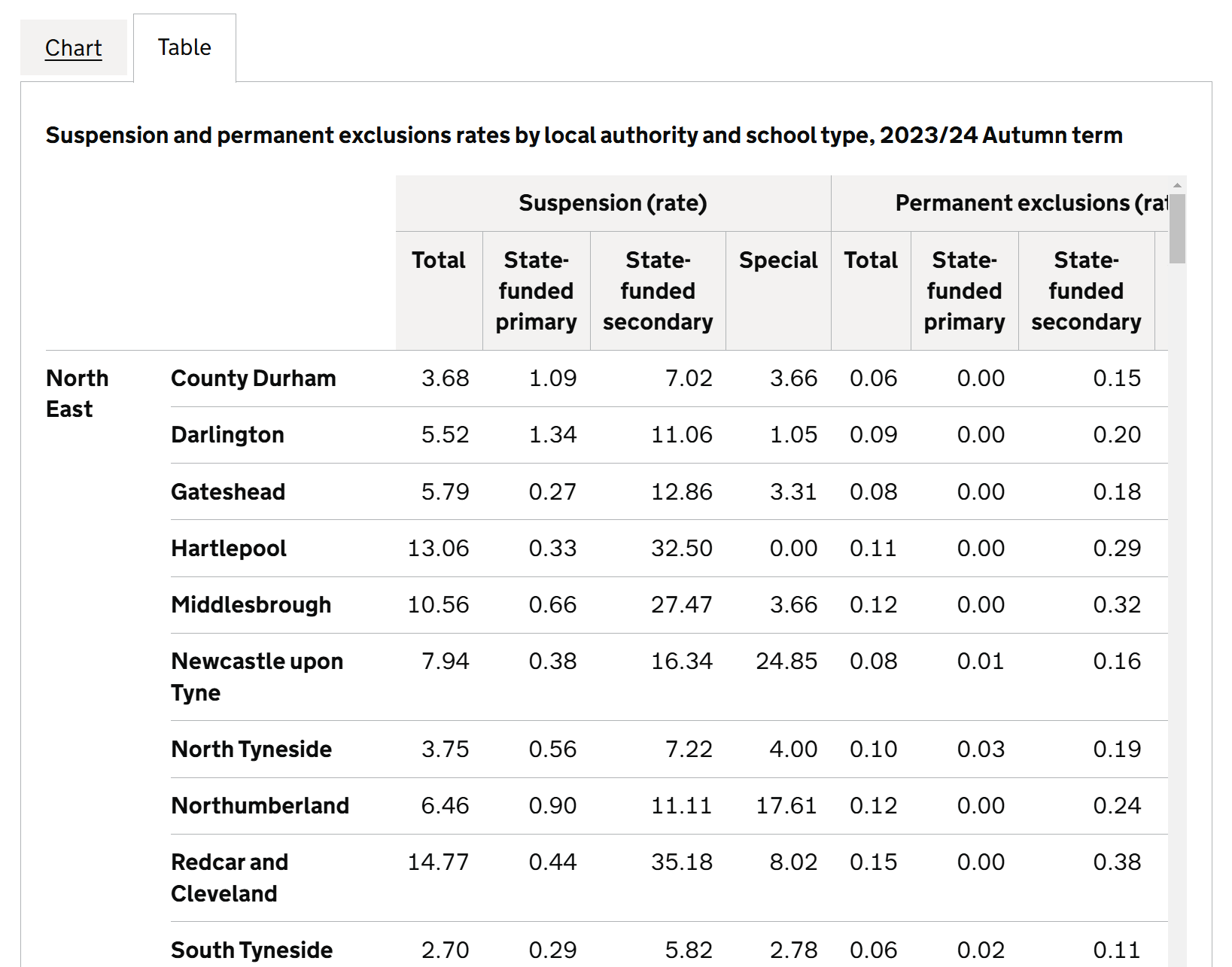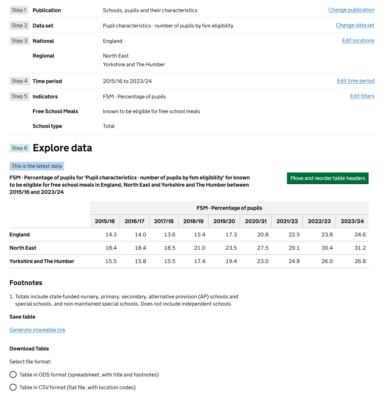 Users can save and share specific tables via our ‘permalink’ feature (example) which has been helpful for us answering PQs and FOIs.