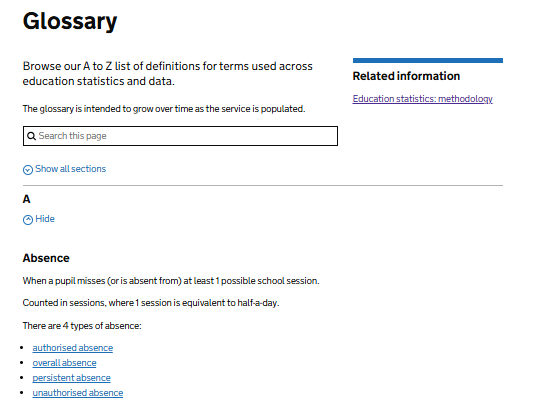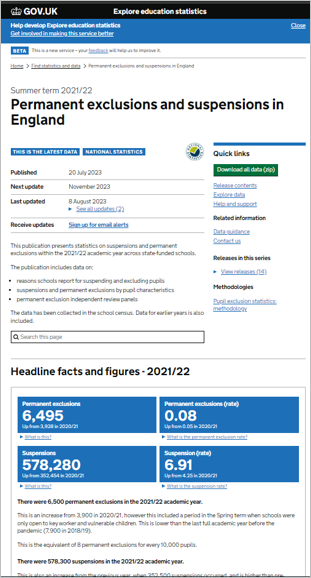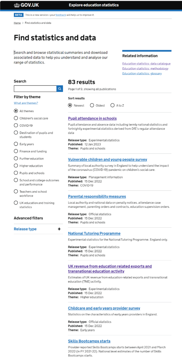 A single catalogue for all DfE’s published statistics.