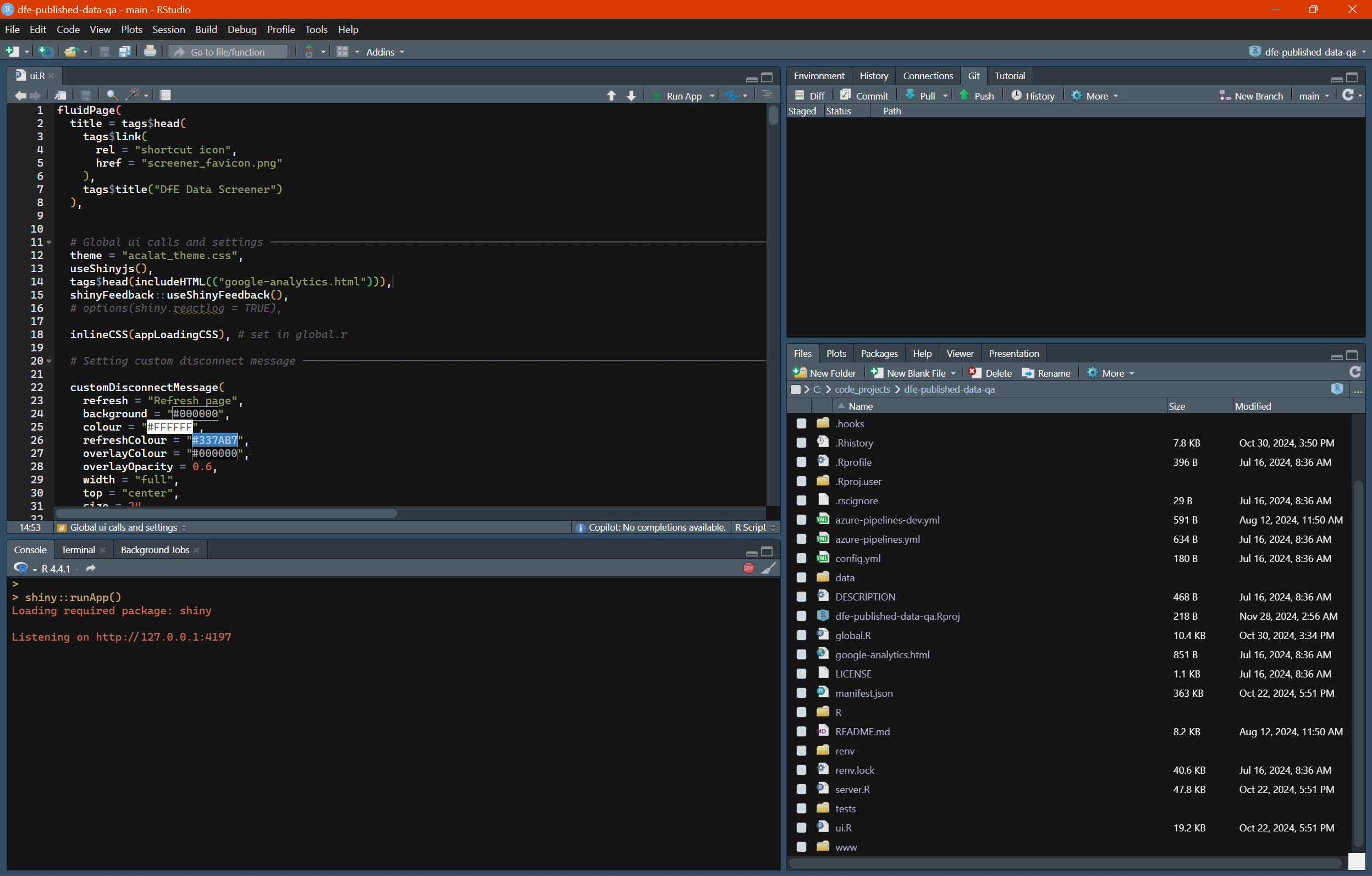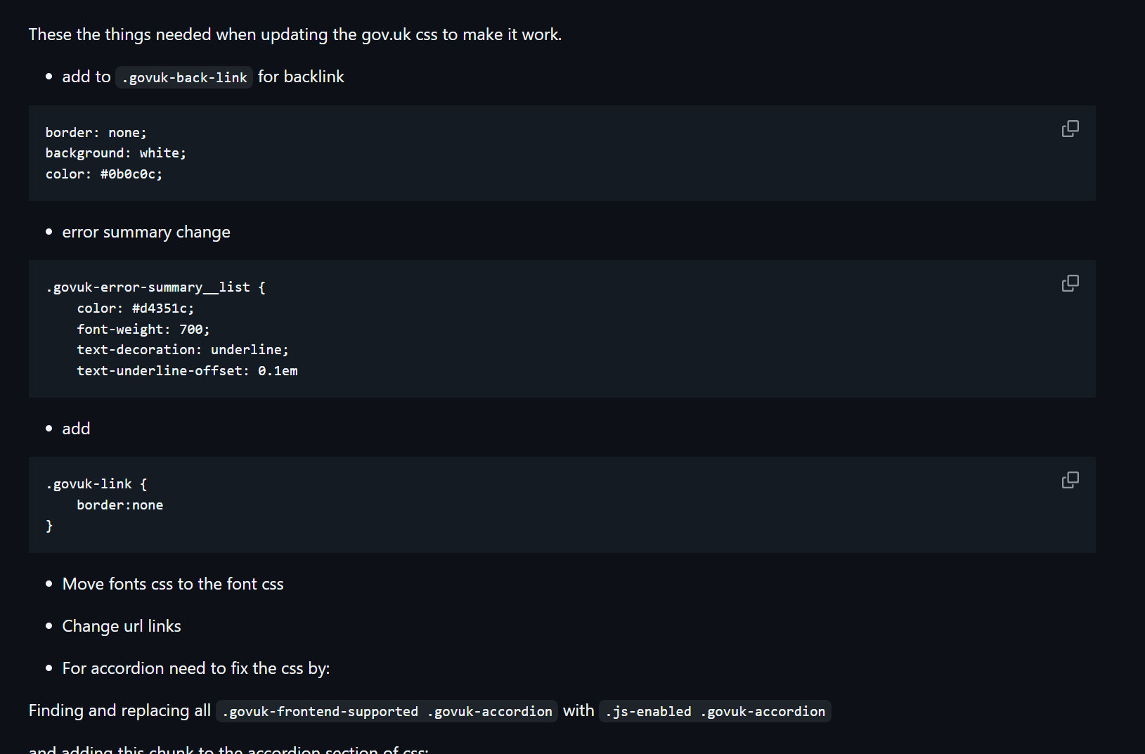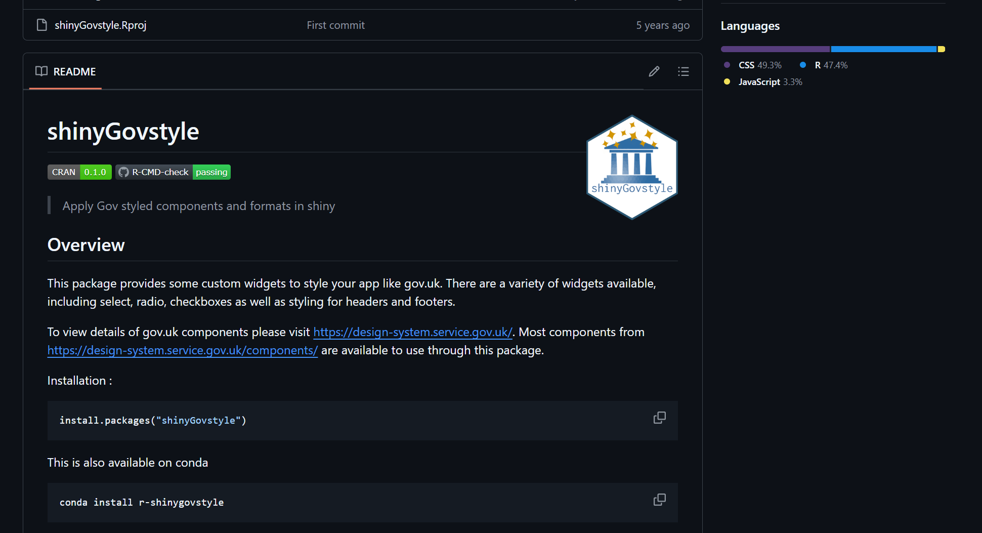 We take static cuts of the GDS CSS on each update and attach into the package, attaching the classes to our custom functions and components, and log any changes we need to make to the CSS to make it work with R Shiny