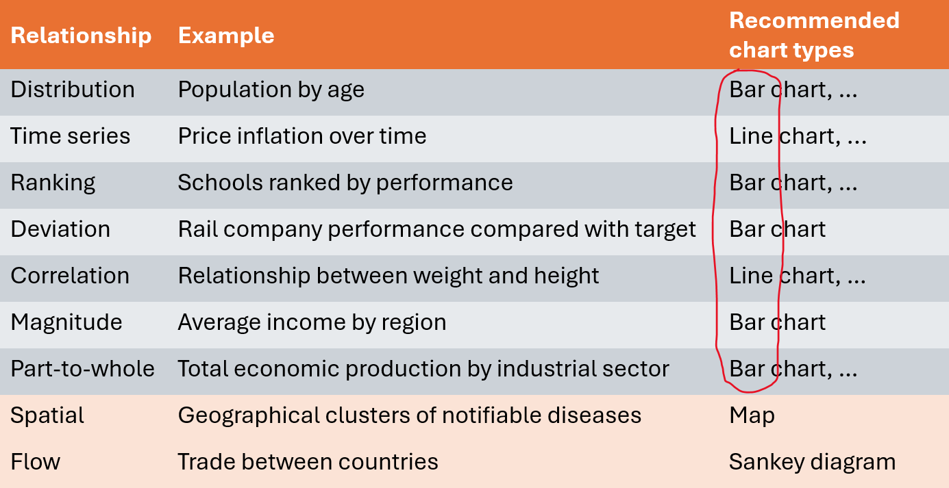 Never release data in a chart only - always have a table equivalent